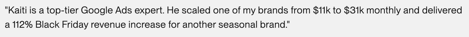 Over the past 4 years, I’ve worked with apparel, F&B, home goods, and lifestyle brands to build clean, profitable Google Ads systems designed for founders who want a specialist, not an agency.